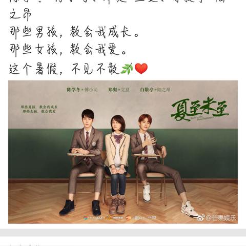 最新《夏至未至》海报采用了清新淡雅的色调,以校园青春为主题,整体设计充满生机与活力,海报中央,主演们的形象生动鲜明,表情各异,展现出了角色们不同的性格特点,背景中融入了大量的夏季元素,如绿树、阳光、跑道等,营造出一种浓郁的夏日氛围。