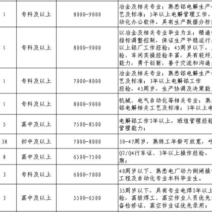 1、采矿工程师:10名,要求本科以上学历,采矿相关专业,有工作经验者优先,月薪范围:8000-12000元。