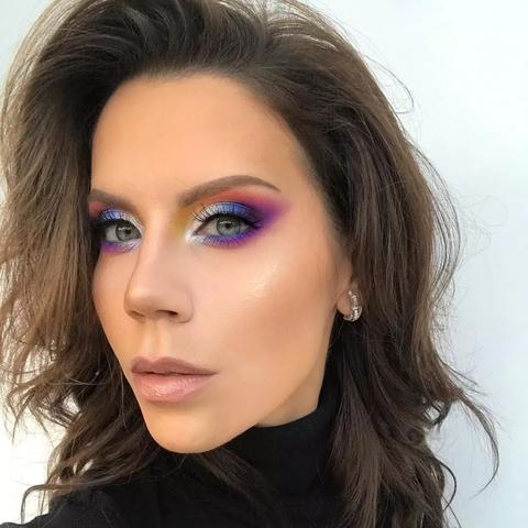 3、眼妆:浅棕色或灰色眼影打底,搭配明亮色彩进行点缀,自然延伸的眼线笔,卷翘的睫毛是眼妆的关键。