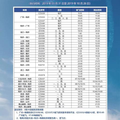 梅州至上海航线是梅州机场的另一条热门航线,上海作为中国的经济中心,与梅州的经贸往来日益频繁,目前,该航线每周有多个航班,方便市民往返两地,具体航班时刻为:上午XX:XX从上海浦东机场起飞,抵达梅州时间为下午XX:XX;返程航班则从梅州起飞时间为晚上XX:XX,抵达上海时间为次日早晨XX:XX。